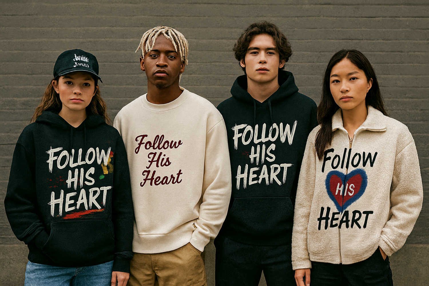 I learned to make clothing the old way — in my parents’ basement, screenprinting tees for punk bands. That same DIY spirit runs through Follow His Heart. We fuse the raw punk rock energy of those early days with the refinement of high-end design, creating pieces that are built to last in meaning and in style.